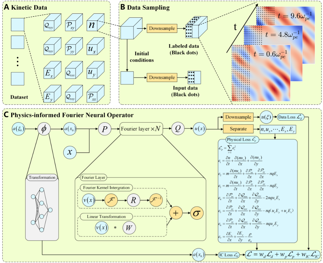 近期,工口实验室 、电磁波信息科学教育部重点实验室付海洋研究员团队在国际期刊 Machine Learning: Science and Technology 发表最新研究成果,论文题为《Data-driven modeling of electrostatic turbulence by physics-informed Fourier neural operator》。该研究提出了一种融合物理约束的傅里叶神经算子框架(Physics-informed Fourier Neural Operator, PIFNO),为等离子体的高效建模提供了新的解决思路。